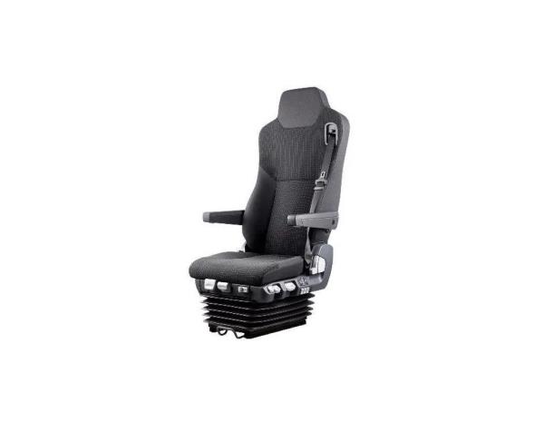 - Air-suspended with automatic weight adjustment for connection to the vehicle compressed air system with permanent at least 7.5 bar - 3-point belt system upper adjustable belt guide - Height adjustment with memory function - Shoulder adjustment - Tilt adjustment - Horizontal adjustment - Adjustable vibration damper - Horizontal suspension can be switched on/off - Seat cushion depth adjustment - IPS (pneumatic lumbar support and side bolster adjustment) - Rapid lowering - Adaptation for armrest mounting/armrests not included - Cover TM02-2238/TU02-2239 (ISRI textile anthracite/grey with fine silver-coloured stripes) - Seat climate control (heating and ventilation) - Track width 216 mm